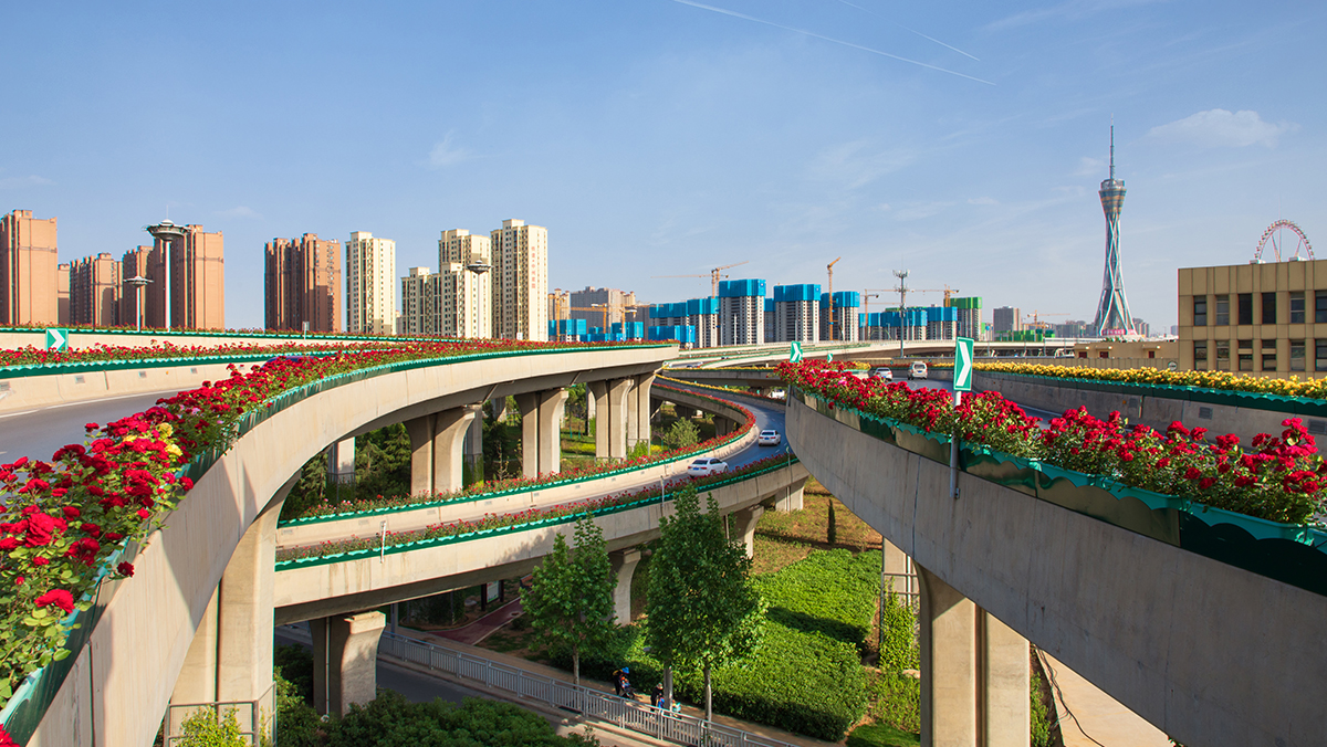 我国大部分的高架立体绿化建设集中在长江流域及以南气候条件较好的地区,黄河流域中原城市鲜有相关技术探索。本项目以郑州 2019 年少数民族传统体育运动会(会期9月8号至9月16号)的举办为契机,选取三个城市重要高架互通进行相关建设实践。