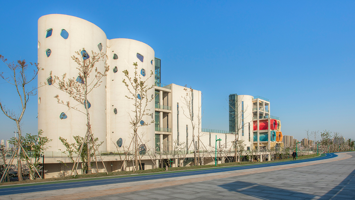 项目位于杭州市滨江区西南,西侧紧邻钱塘江,东侧为滨江智慧新天地区块,是滨江区沿江仅存的可利用岸线空间。场地交通便利,景观视线绝佳,基地内部包括一处之江水泥厂工业遗存。