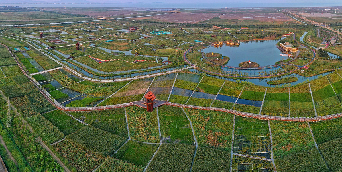 台州湾现代农业水生态工程位于台州湾循环经济产业集聚区,是维持集聚区内水生态、水安全的重要保障,工程优先处理东部新区农田灌溉用水,服务周边现代农业产业发展,并布局农业生产与农耕体验游线,最终形成集灌溉水净化、农耕主题文化、田园农耕体验、农业创意博览为一体的,并融合集聚区循环经济理念的现代农业发展的典范工程。