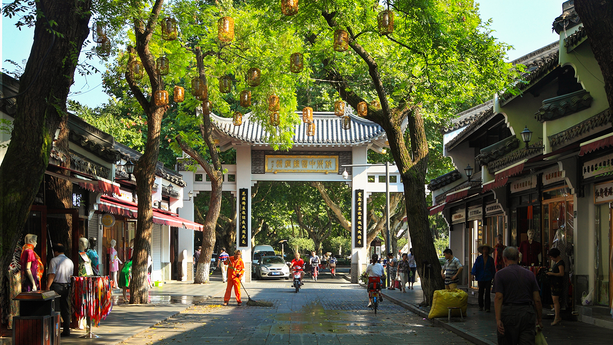 杭州丝绸城特色街坐落于杭州市下城区。面积约 24400 平方米,现状为以丝绸零售为主要业态形式、以江南民居为主要建筑风貌的传统商业步行街。