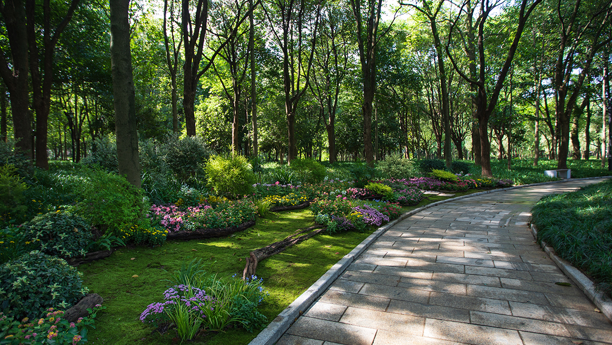设计以打造“全国首个劳模工匠文化主题公园”为目标,通过多途径“有机更新”策略,焕发公园新生机。设计基于原有优质生态本底和空间结构,以点带面、精准提升,增强公园游客承载力和吸引力;因地制宜融入杭州、全国乃至世界劳模工匠文化相关元素,重点营造六大文化景观节点,着力展示劳模工匠文化元素和精神内涵;有效改善公园水系水质;大面积运用环保有机覆盖物形成“色彩林”,亦或合理配置枯木和耐阴植物创造情景花境,点靓林下空间;数字赋能助力智慧园区打造。