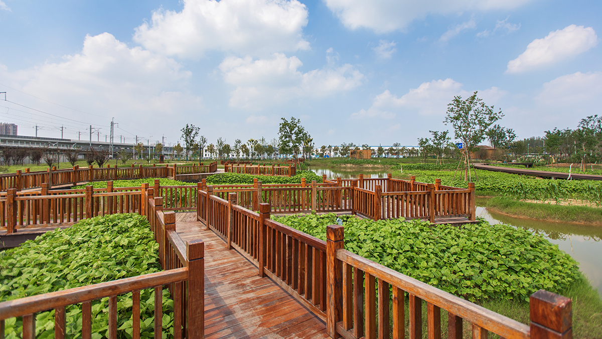 盐城湿地公园设计范围西至城际铁路,东至通榆河,南至青年路高架, 北至建军路,规划范围总面积为44.13公顷。