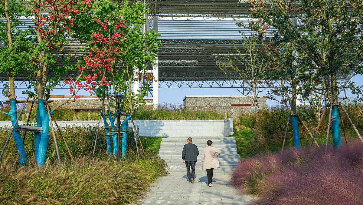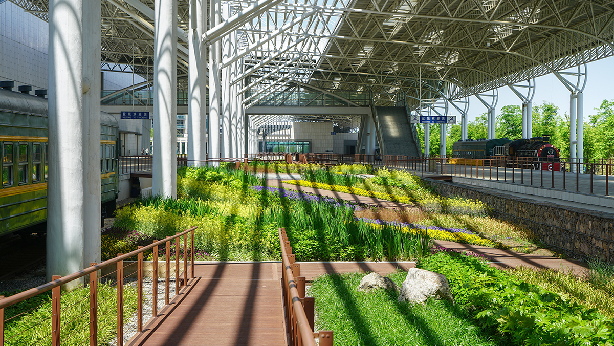 项目共分为三大片区,博物馆区主广场结合现状雕塑,保有场所记忆,开敞大气。铁道公园区作为衔接湿地博物馆和湿地公园的纽带,着重打造湿地特征,营造具有良好生境的鸟类栖息地。酒店会议区重点营造雅致、静谧的氛围,突显各个庭院的特色,并使得空间流动渗透,多维可观。