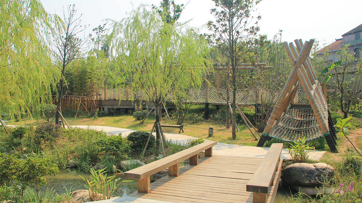 设计依托原有地形、水系等自然资源,因地制宜将游乐设施融入园林造景之中。