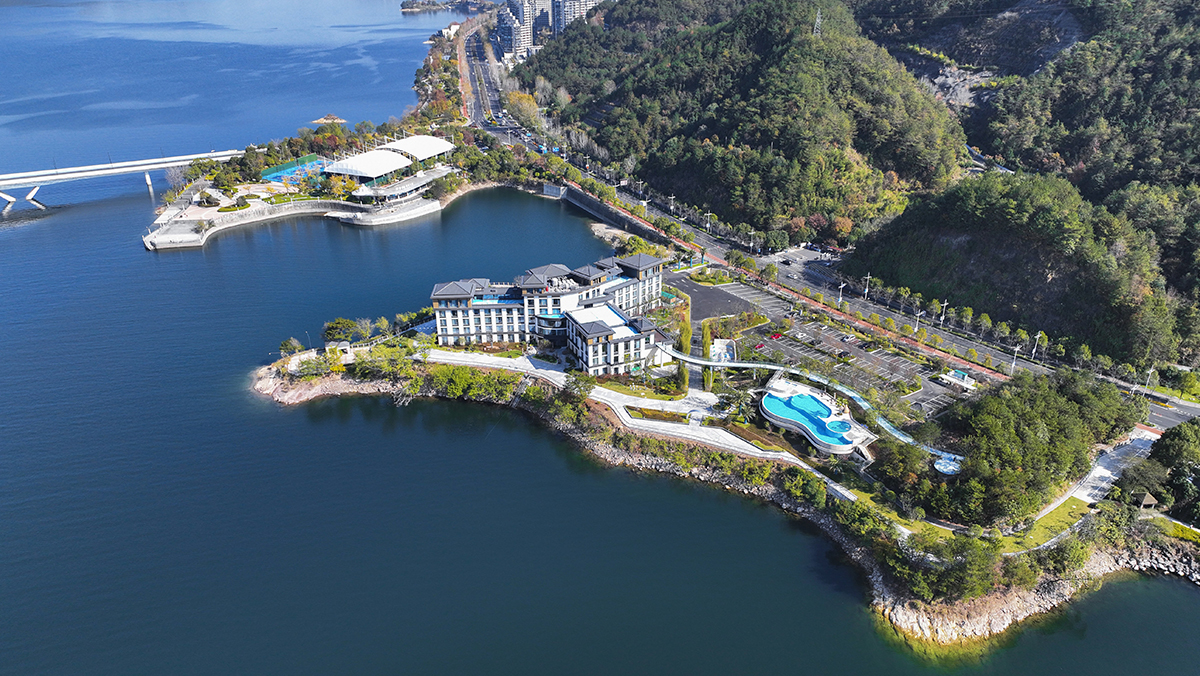 千岛湖万枫酒店坐落于千岛湖畔,天屿山脚下,三面环湖,坐拥辽阔湖景与山景。景观提升改造内容包括景观游线布置、植物营造、网红点打造、夜景亮化等。设计团队细心打磨景观与建筑的链接关系,景观与场地内山体的互动关系,景观设施与自然界面的对望关系,采用现代简约的设计风格,从度假式体验角度着手,打造静谧、轻奢的酒店景观环境。