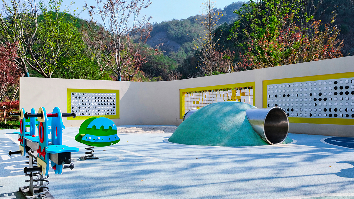 项目以得天独厚的自然条件和别具一格的室外景观设施彰显度假风情。迎宾景墙、无边泳池、曲形空中栈道、观景挑台、竹林大道、枫之月网红打卡点、户外儿童乐园、户外咖吧等,作为游客休闲打卡、放松休憩之所,纵享湖畔生活新体验。