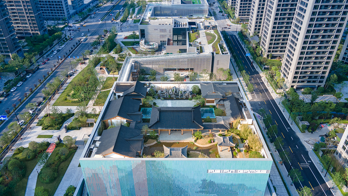 村长院以宋式园林风韵结合现代建筑功能,利用建筑第五立面打造屋顶花园,拓展亚运村绿化面积及户外开放空间,形成独具宋韵魅力的亚运空中文化会客厅,有力保障了亚运会及亚残运会期间的接待服务任务,提升城市的国际形象,具有深远的社会效益。赛后转化为文化展览空间,结合主体建筑承办的会议会展丰富市民活动,对亚运村板块及城市的经济发展起到积极作用,成为见证杭州亚运盛会的新名片。