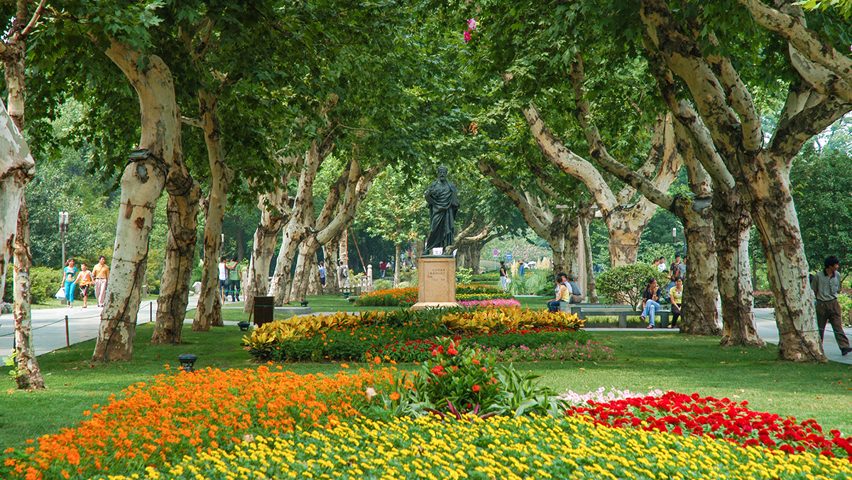 湖滨公园是西湖东部滨湖六座公园的总称,长约1千米,由六块大小不一的园地连缀而成,从南至北,依次为一至六公园。