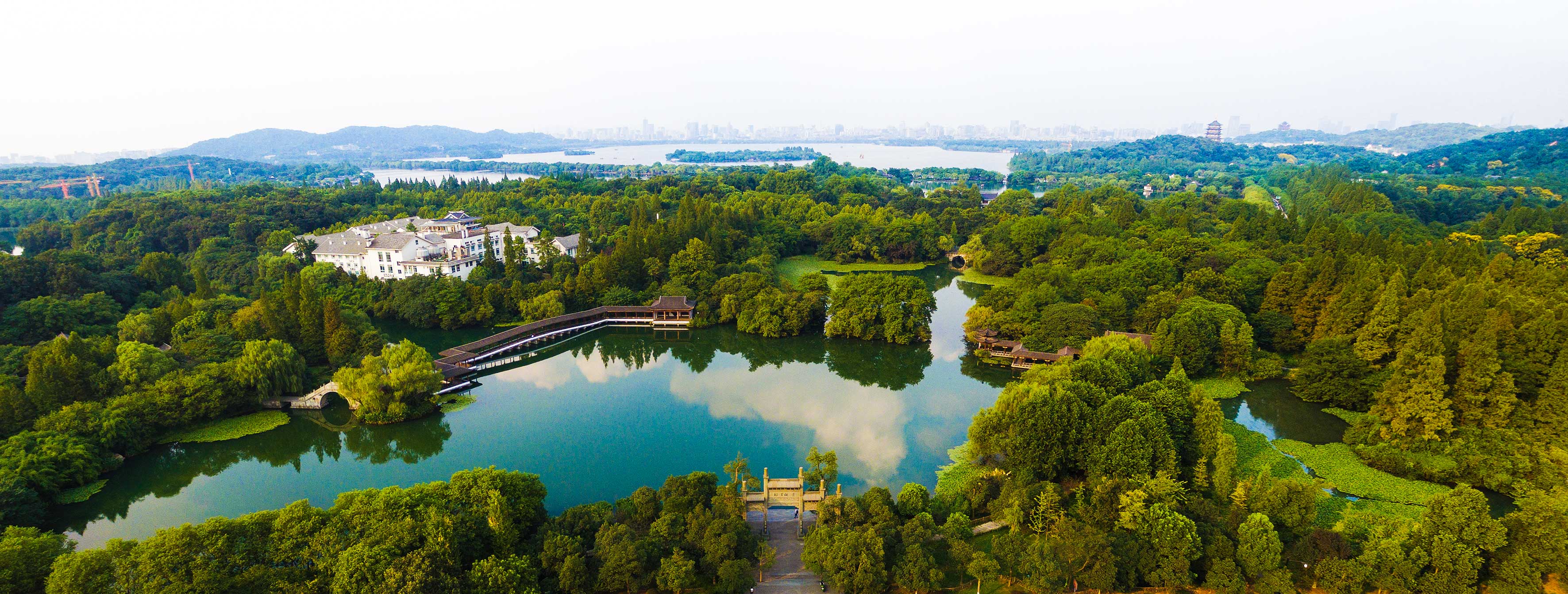 位于三台山景区最南端,通过水道与乌龟潭相连,又经濬源桥及花港公园内水港与小南湖贯通。浴鹄湾湖面聚散开合,岸线曲折有致。水面上几座为保存原有乔木而留下的小岛将全湾分割成内外两部分,外湾连通西湖,内湾平静无波。对沿岸名人故迹进行了恢复,为此处增添了丰厚的人文气息。