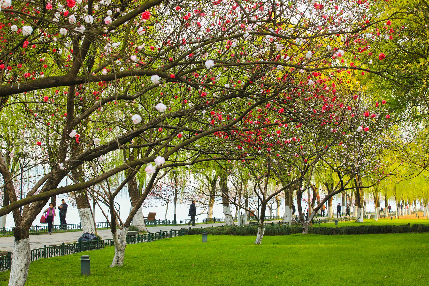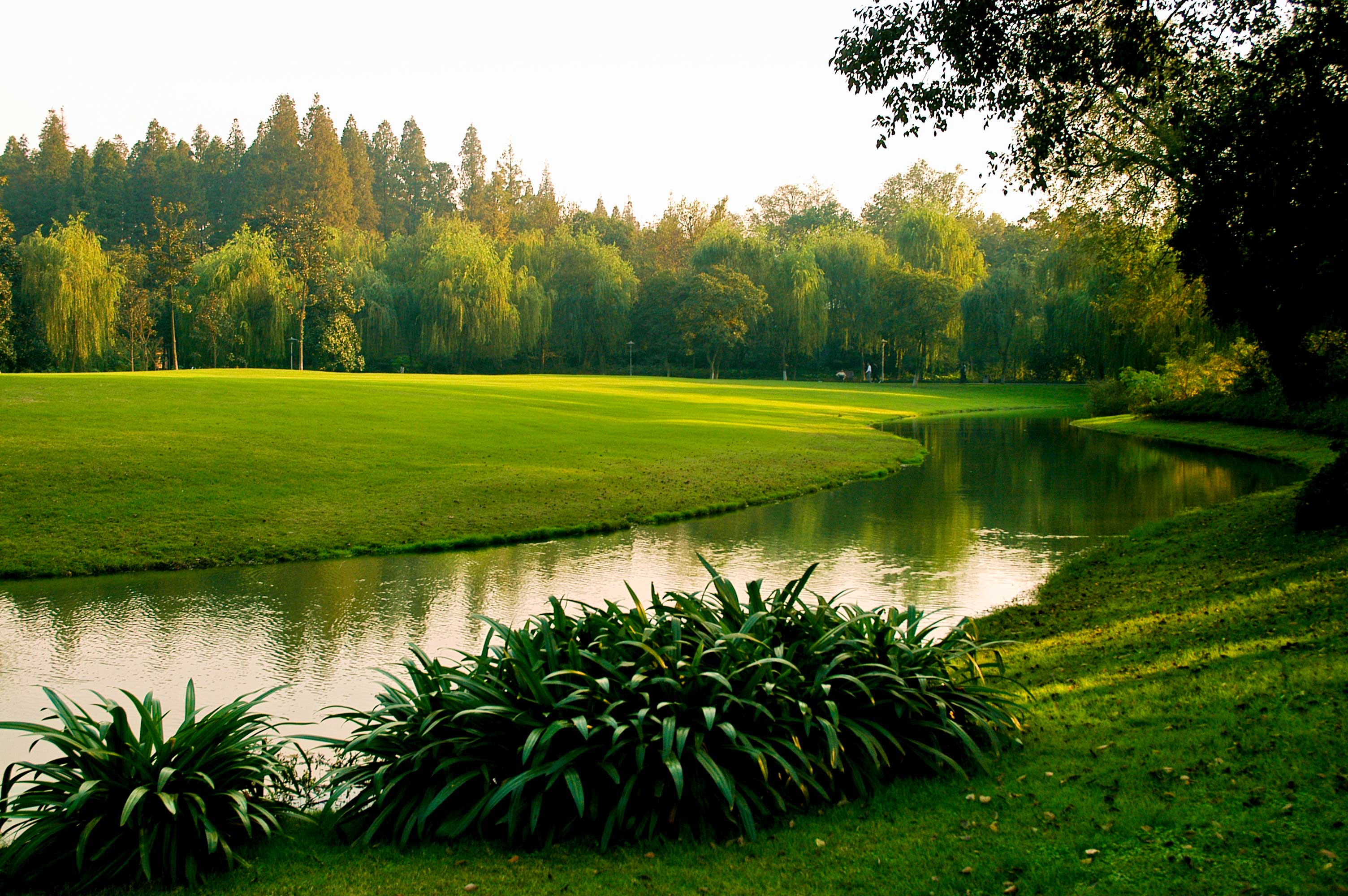 “柳浪闻莺”是西湖十景之一,是西湖边的观景佳地。园内开挖水体,改造地形,梳理植物,形成了大片草坪、疏林草地、密林相间的公共绿地。水边绿草如茵,远处乔木如峰峦般起伏,林下繁花锦簇,景观清新、雅致。柳浪闻莺在继承传统造园手法的同时,力求创新,在园林空间布局、园林植物配置等方面,探索了新的内涵和表现形式,形成融于西湖自然山水并符合新时期公共游赏休闲的新园林。