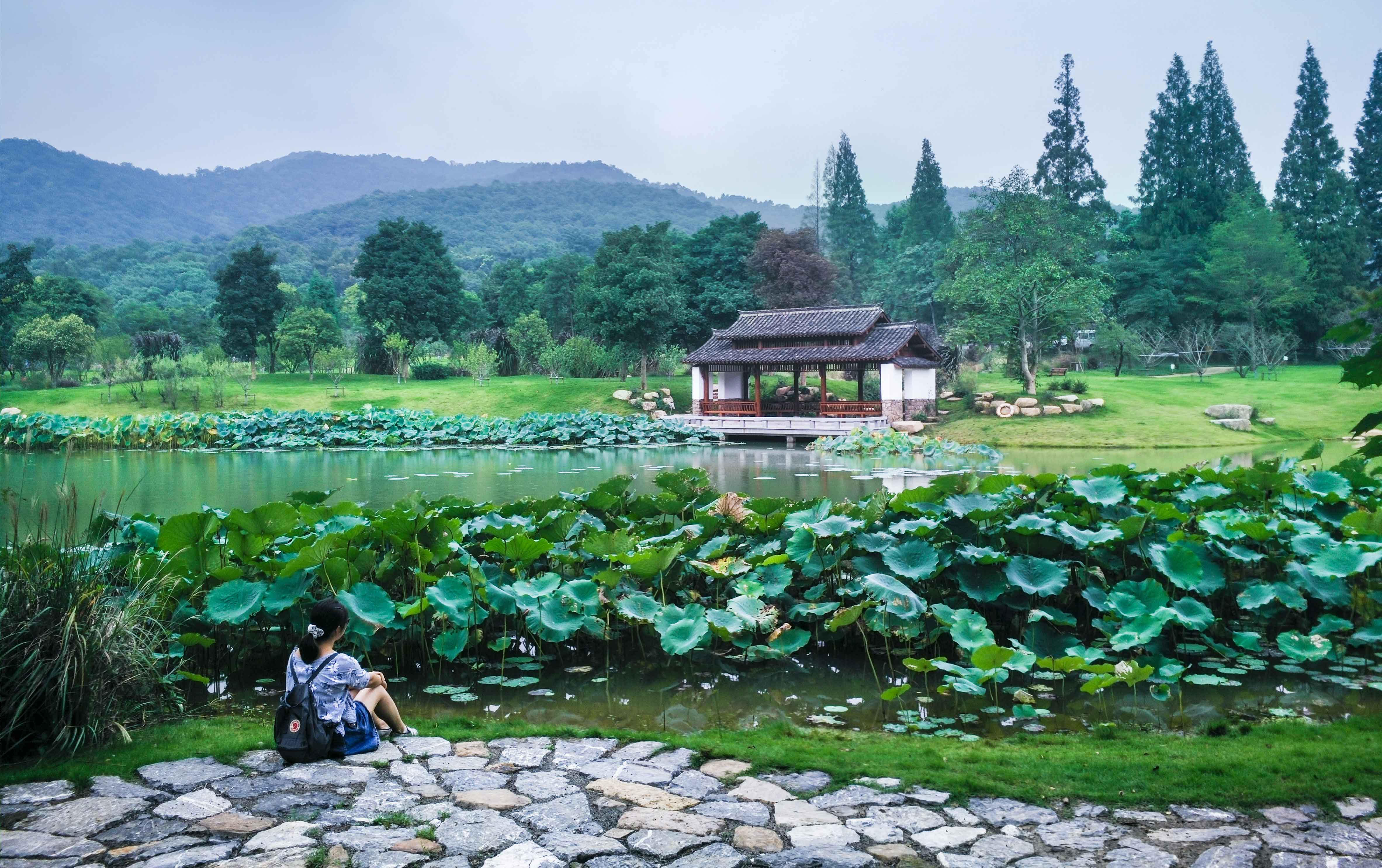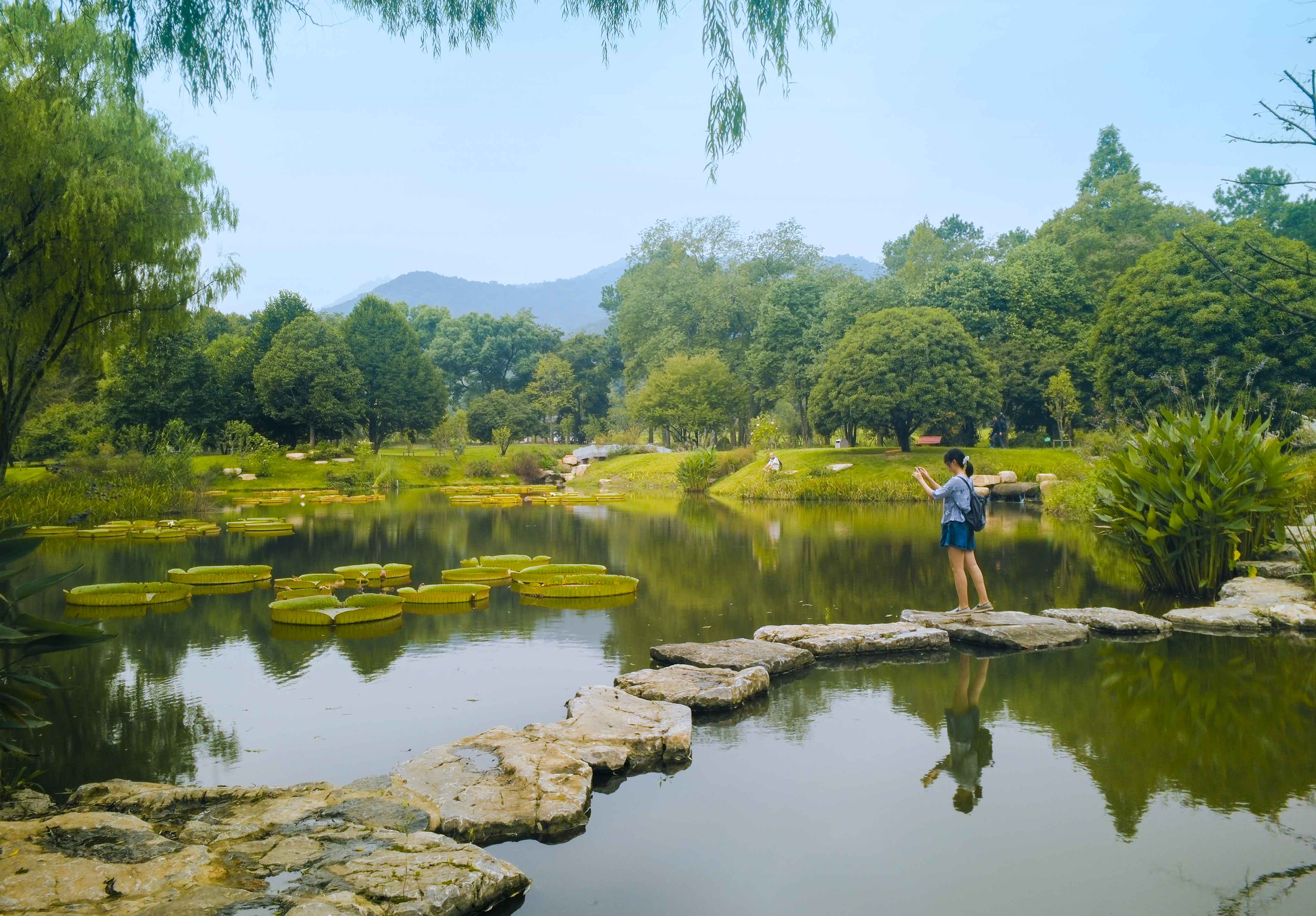 水湿生植物除搜集适应杭州及华东地区生长的植物外,特别收集睡莲、鸢尾两大类品种作为主题,营造集生态旅游、休闲观光、科普教育和科学研究等功能为一体且具有特色景观的水生植物区。其中睡莲品种搜集目标为500-600种,以室外观赏展示和种质资源保护两种方式保存,成为浙江省内甚至全国范围内睡莲品种引领者。