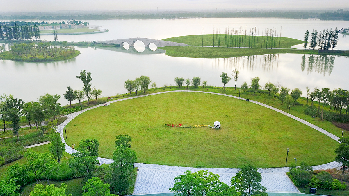 作为一个极具活力的城市景观新核心,鹃湖公园的设计围绕打造宜居新城典范的总体目标,立足基地良好的生态本底和密切的城湖关系,突出强调其生态保育和风景游赏功能,将基地建设成为一处生态环境与城市繁荣生活和谐发展、科技艺术与传统文化有机融合的滨水绿色开放空间,构建新城双引擎,开启新生活。