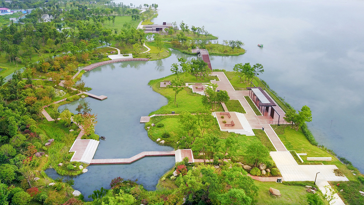 海宁鹃湖公园位于海宁中心城区,总设计面积约为 2.9 平方公里。公园分为北侧的生态湿地公园和南侧的环鹃湖公园。