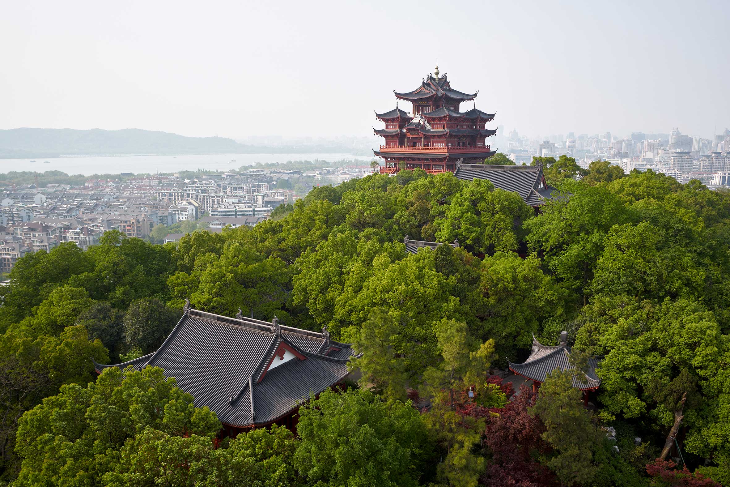 杭州城隍阁位于吴山天风景区,选址在西湖南部群山延伸进入市区的吴山峰顶上,为七层仿古楼阁式建筑,高41.6米,面积3789平方米。