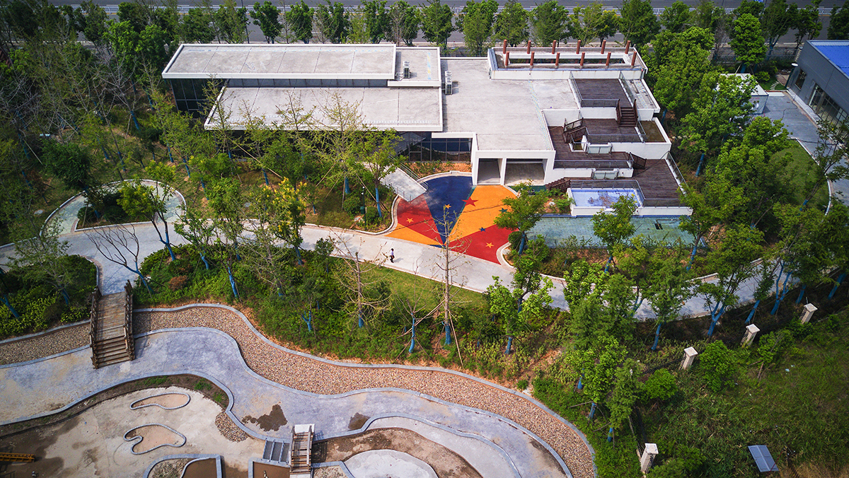 建筑群从规划布局到建筑、景观设计都符合青少年的性格与趣味特点,设计将实践基地打造成为富有湿地特色的学习、体验场所 。建筑的总体布局摒弃了传统的校园布局模式,采用自由活泼的花瓣式布局,充满了灵动与趣味,让青少年的身心在这里放飞。