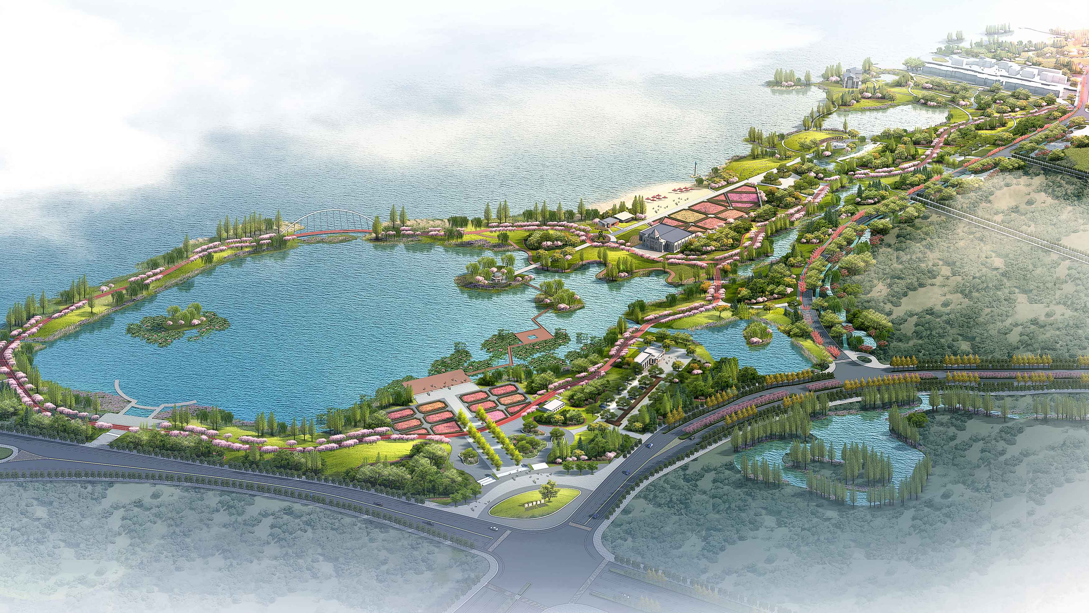 本项目位于江苏宿迁湖滨新城骆马湖滨湖风光带的南部区块,南起罗曼园,北至待建上相湾区域,西临骆马湖,东至环湖大道东侧约30米宽绿带,全长约3km,总面积约为79公顷。项目区域内包括四部分内容——罗曼园、水生植物园、东部隔离带(南段)、环湖路(南段)。
