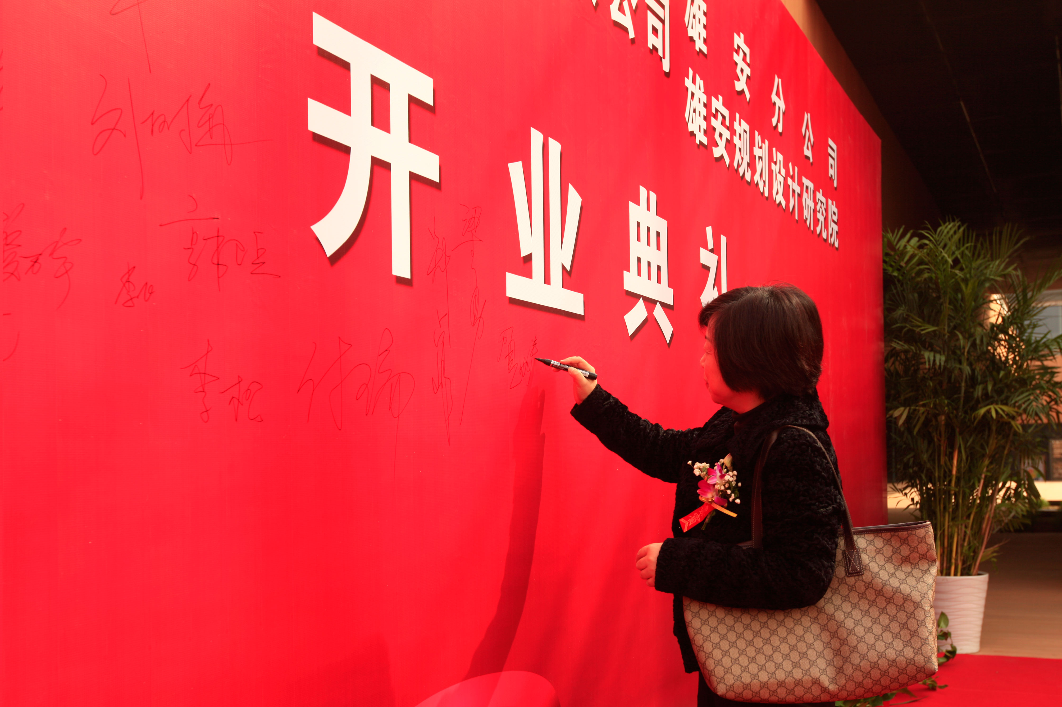嘉宾在签名墙签字