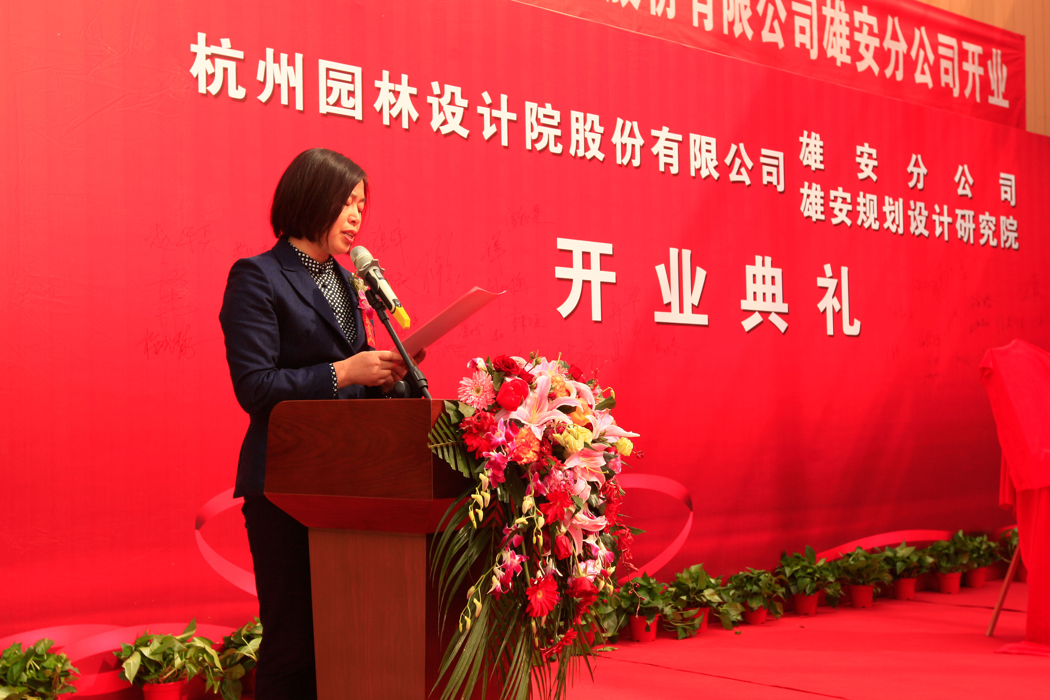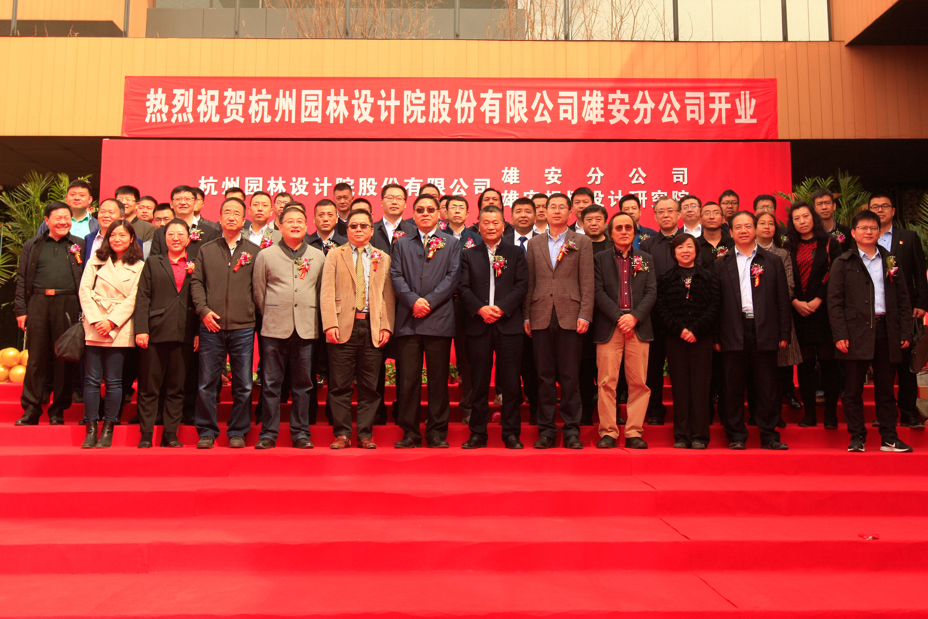 2019年3月27日,中国勘察设计协会、中国勘察设计协会园林和景观分会、雄安新区管理委员会规划建设局、中国园林(雄安)设计联盟、河北省建筑设计学会理、河北省风景园林学会、保定市园林局与中建八局雄安分局、中建四局雄安事业部、中建五局雄安分局等30余家央企的领导齐聚雄安设计中心,共同为杭州园林设计院股份有限公司雄安分公司在雄安设计中心举行揭牌仪式。公司总裁吕明华、副总裁兼设计集团总经理李永红、董事会秘书伍恒东、雄安分公司总经理李勇等出席揭牌仪式。