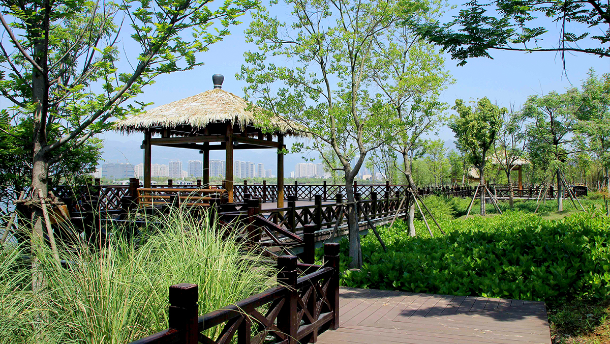 设计初期既在满足滞洪区蓄滞洪功能前提下,提前考虑与周边的胜利塘河、胜利河及盐盆山等地块相互联动统筹规划,差异化定位,共同打造乐清中心城区的“城市绿肺”。