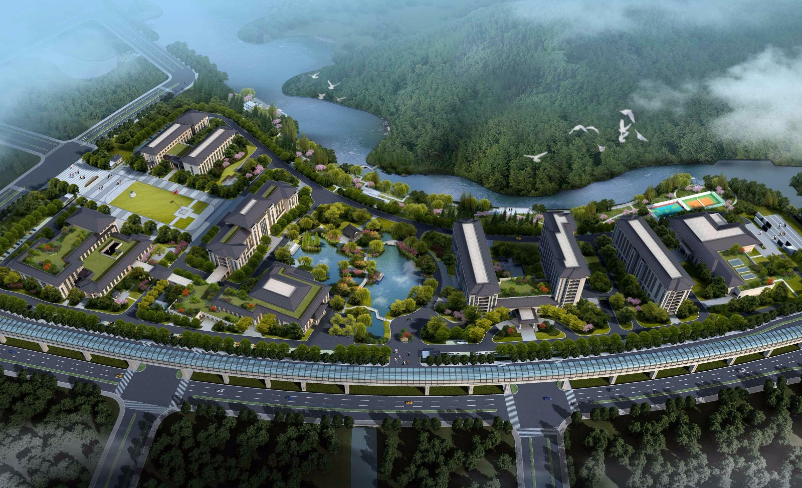2015年5月,我院在中共宁波市委党校迁建项目的投标中,获得方案创意设计第一名。 中共宁波市委党校迁建项目选址于宁波市慈城新区,用地面积约131158平方米,规划总建筑面积约105000平方米。